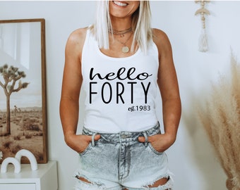 40th Birthday Tank Tops Hello Forty Tank Top Est 1983 Shirt Etsy Canada